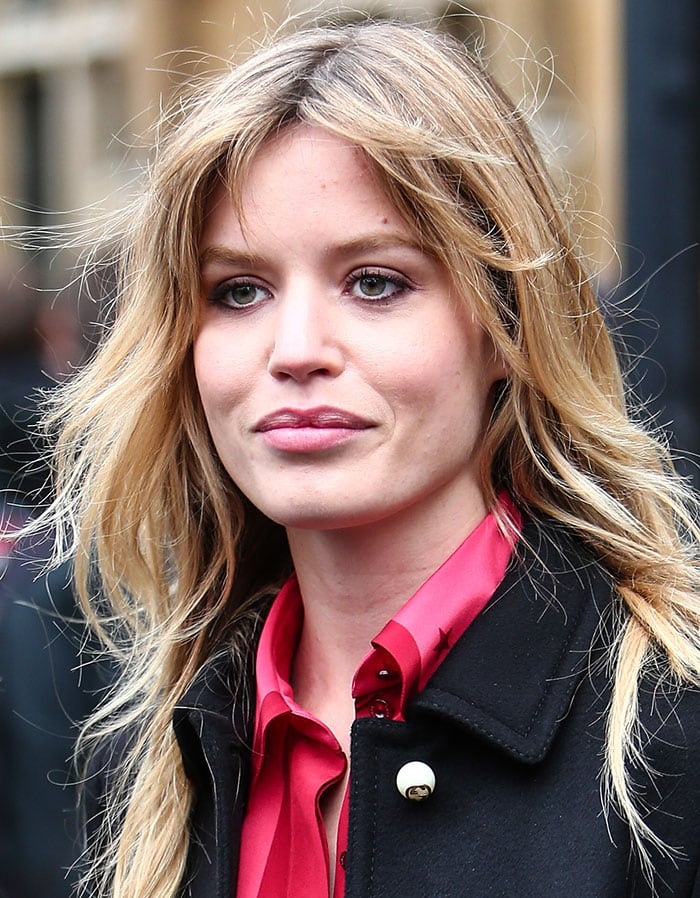 Beloved for her quirky tooth gap, Georgia wore her blonde hair in tousled waves with fringe and sported natural-looking makeup with a hint of soft pink lipstick.
