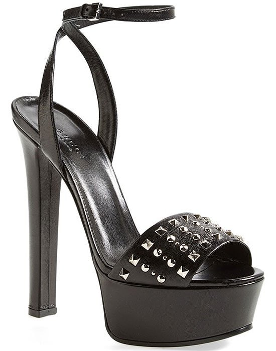 Gucci “Leila” Studded Leather Platform Sandals in Black, $695