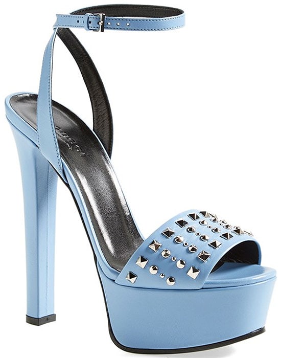 Gucci “Leila” Studded Leather Platform Sandals in Mineral Blue, $695