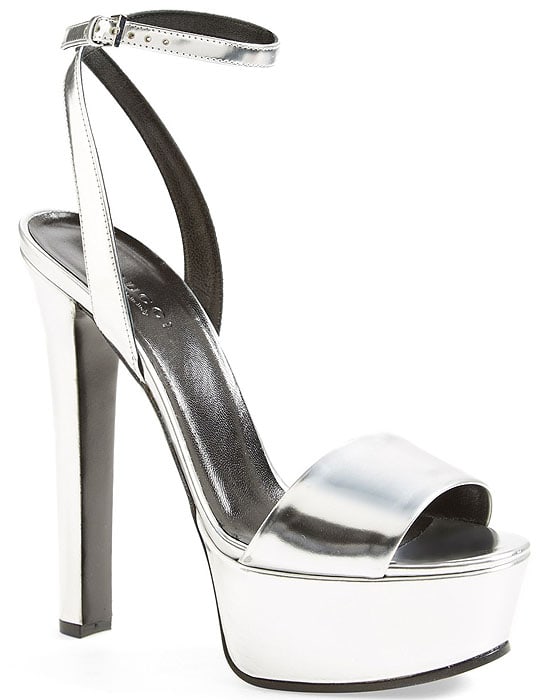 Gucci “Leila” Platform Sandals in Metallic Silver, $675