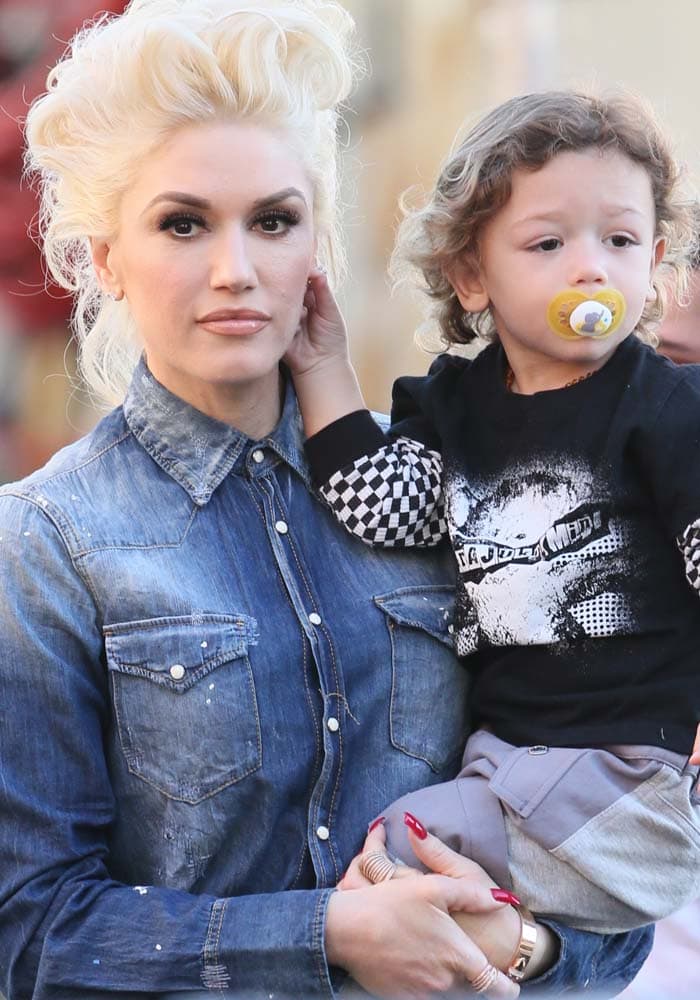 Gwen Stefani with her son Apollo Bowie-Flynn Rossdale outside the ABC studios for “Jimmy Kimmel Live!” in Los Angeles on February 16, 2016