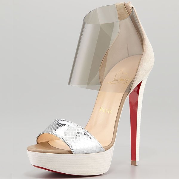 They are the Christian Louboutin “Dufoura” sandals, popular among celebrities.
