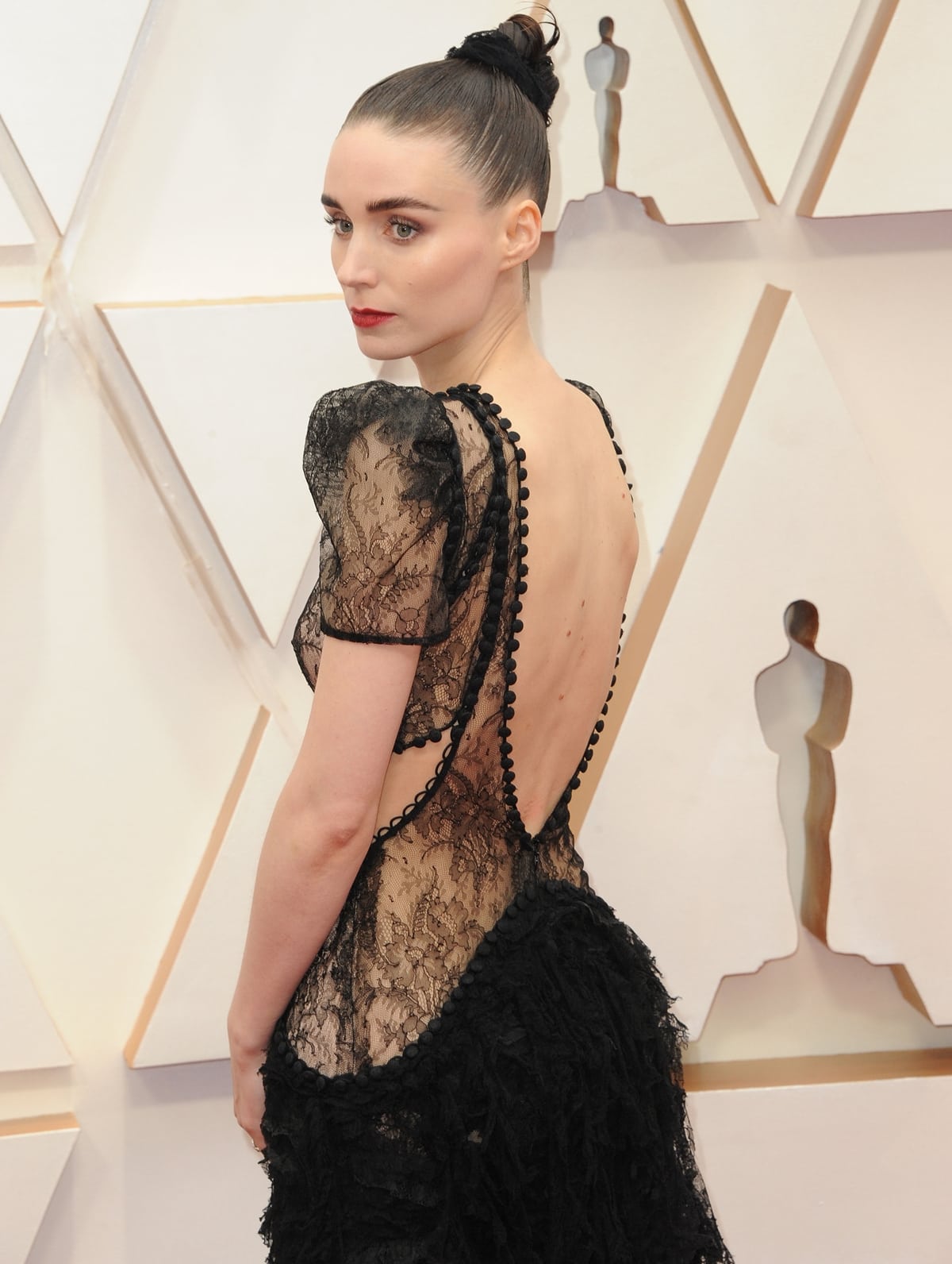 Rooney Mara in an Alexander McQueen frilled ruffle dress at the 2020 Academy Awards on February 9, 2020, at the Dolby Theatre in Hollywood (Credit: WENN / Avalon)