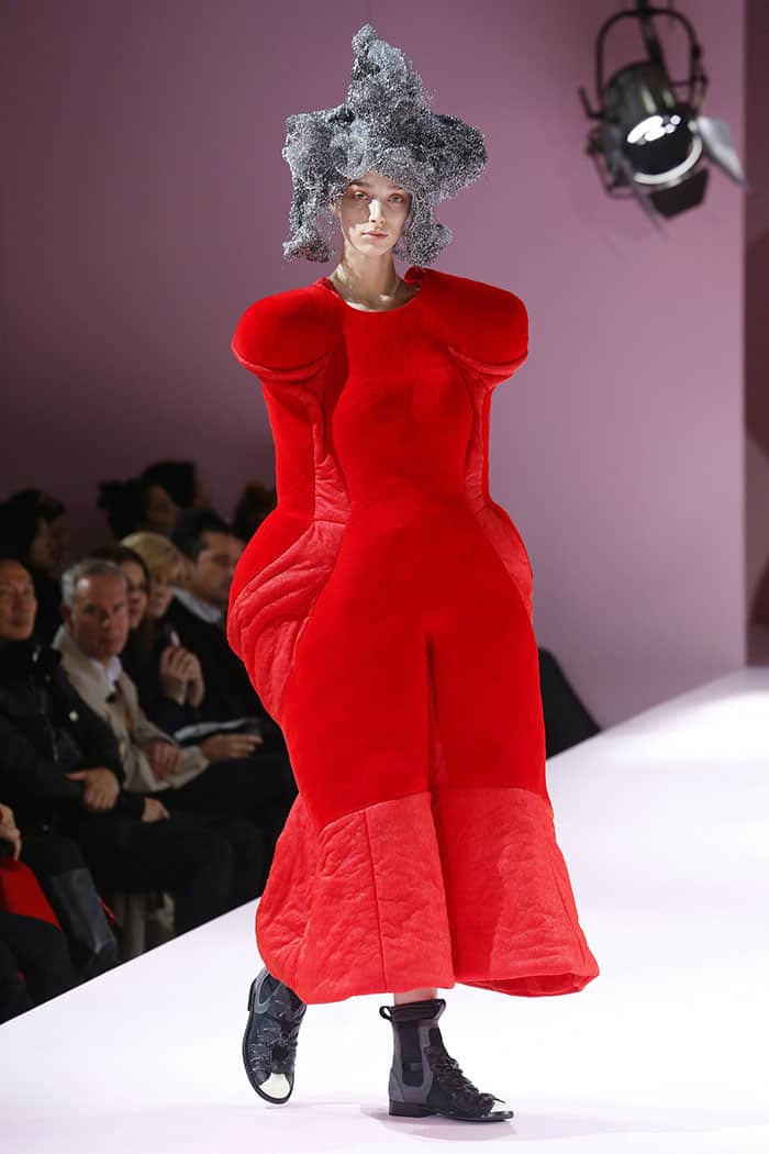 Helen wore the complete Comme des Garçons fall 2017 runway ensemble down to the black boots with triple knotted bows and white cap toes on her feet.