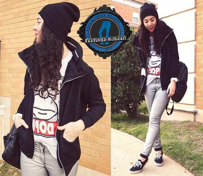 You can coordinate your metallic jeans with similar-colored pieces like Hope below or keep the rest of your outfit plain to make your metallic jeans stand out. Unfortunately, Hope’s blog, Simply Hope Style, is unavailable online.