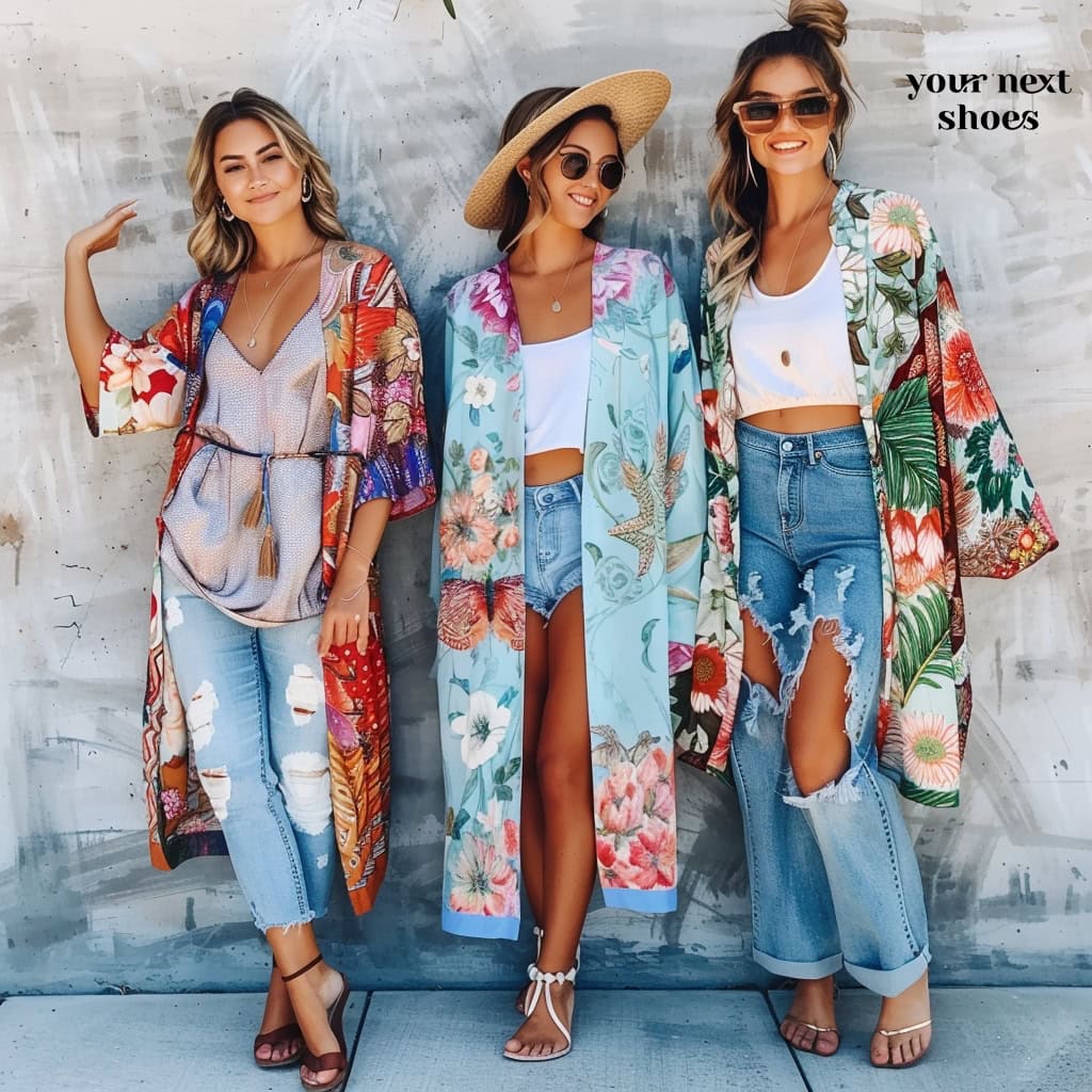 A simple tank top paired with skinny jeans can be effortlessly elevated by adding a printed kimono. This lightweight cover-up introduces a pop of pattern to the ensemble and adds a touch of sophistication.