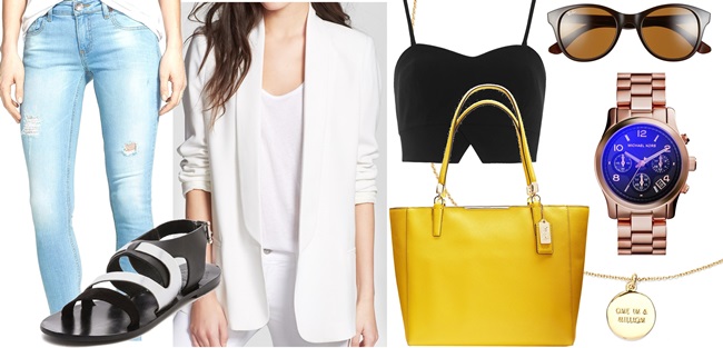 Sure, we’re all about shoes here, but clothing and accessories always go hand-in-hand in fashion, so we thought it might be a good idea to work up a post on how you can rock two of summer’s best staples — the white blazer and flat strappy sandals.
