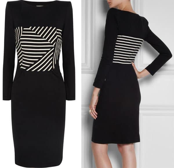 The former one-third of the Charlie’s Angels wore a gorgeous black-and-white creation from Boy by Band of Outsiders that had strong structured shoulders and a striking geometric pattern that wrapped around the torso.