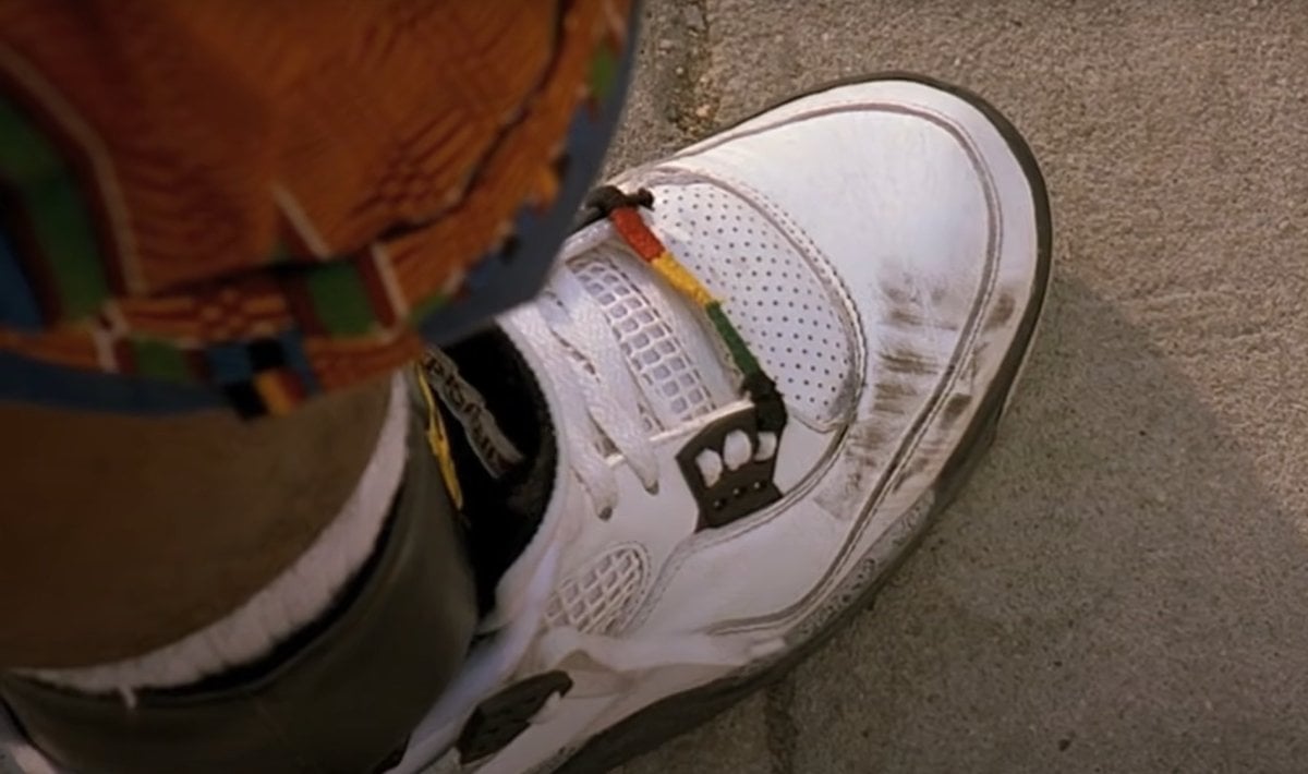 One classic scene of the film involves Buggin’ Out (played by Giancarlo Esposito) – who has a brand new pair of Nike Air Jordan 4’s that get scuffed when a fan of the Boston Celtics steps on his shoes, causing Buggin’ Out to fly into a rage at the unsuspecting Celtics fan.