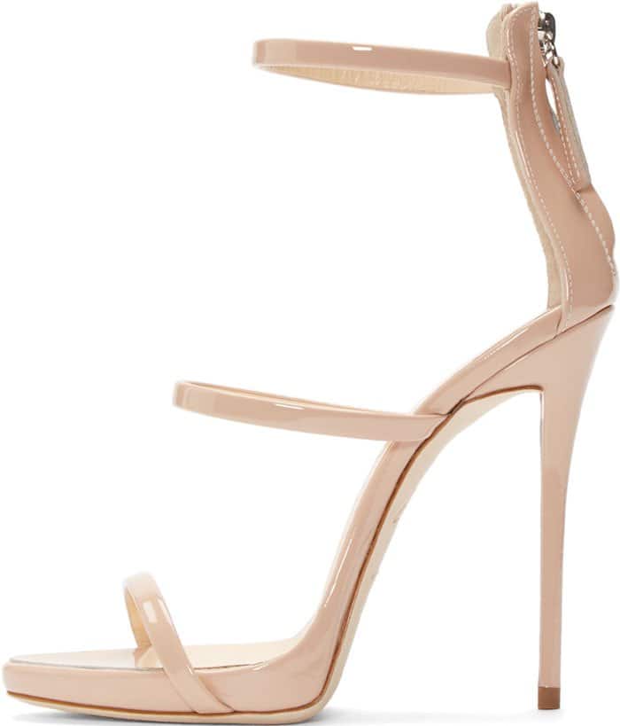 These three-strapped patent leather sandals have back-zip fastenings and about five-inch stiletto heels. You can buy them at Nordstrom and Saks.