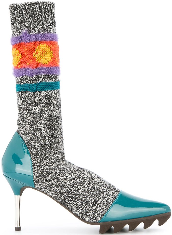 Would you wear these Intarsia sock boots from Tokyo-based clothing brand Kolor? You can buy them in grey/red and grey/blue leather at Farfetch.