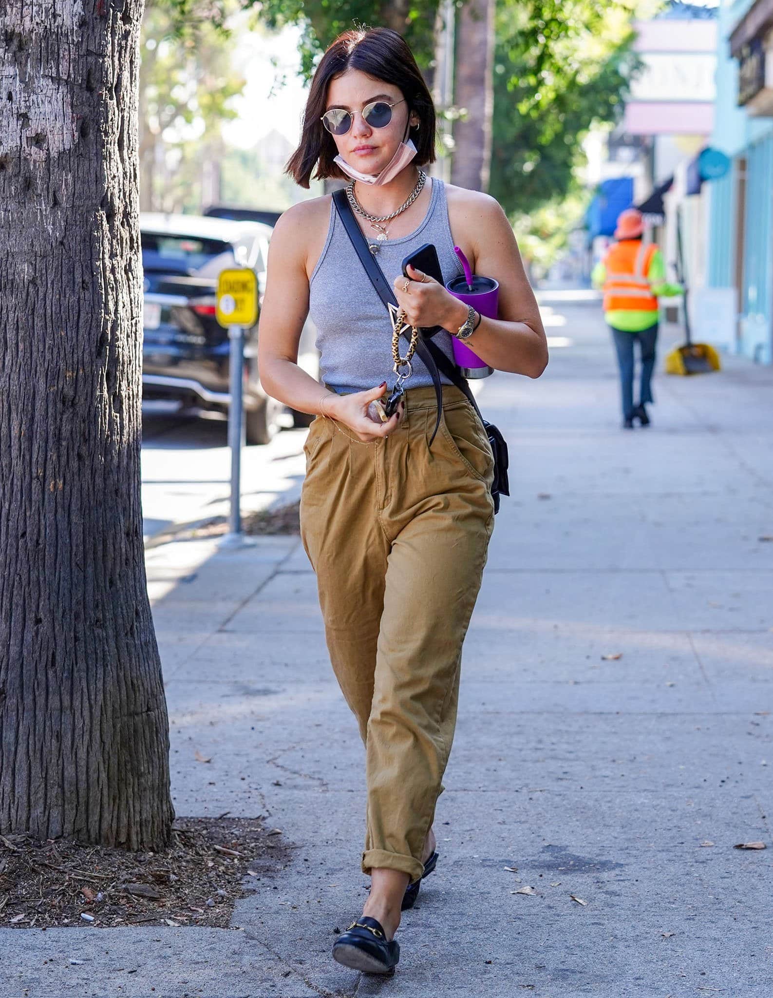 Cool in Khaki: Lucy Hale Keeps It Edgy With Gucci Loafers