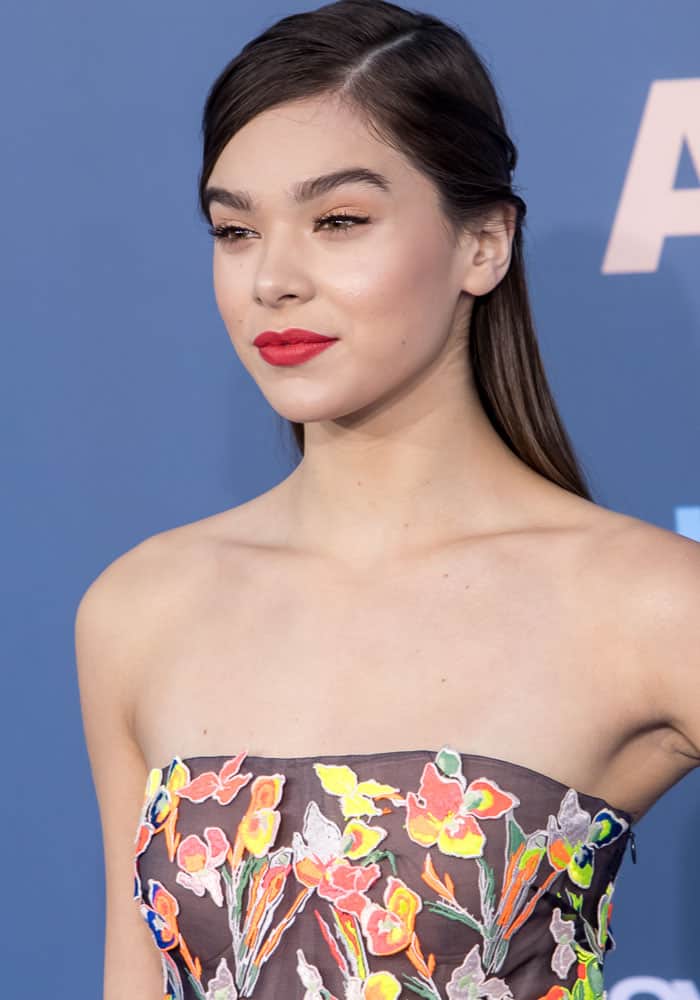 To add to her demure look, Hailee wore a rosy lipstick shade and wore her hair back in a side-parted half ponytail.