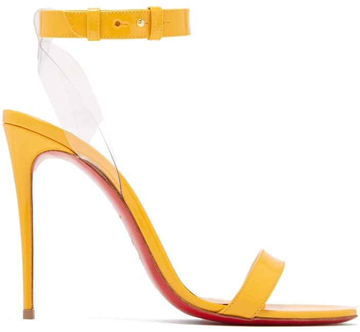 These yellow Jonatina sandals feature clear PVC straps that offer leg-lengthening possibilities.