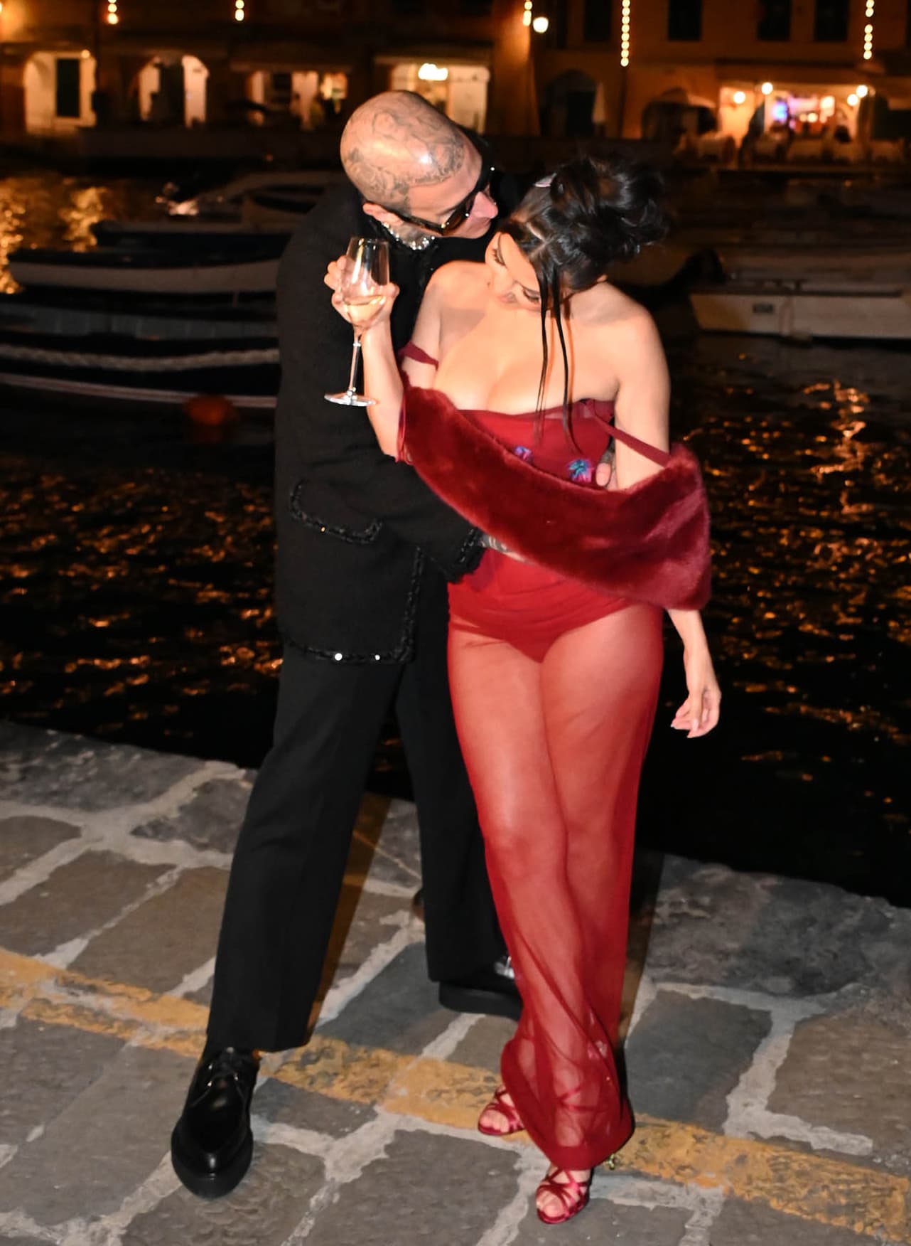 Their guests, composed of their family and close friends, were pictured boarding the Regina D’Italia, a yacht previously owned by Dolce & Gabbana, on their way to the pre-nuptial lunch at The Abbey of San Fruttuoso.