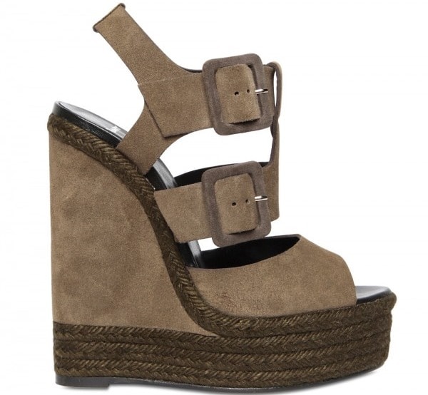 Pierre Hardy Suede Buckled Sandal Wedges in Grey, $630