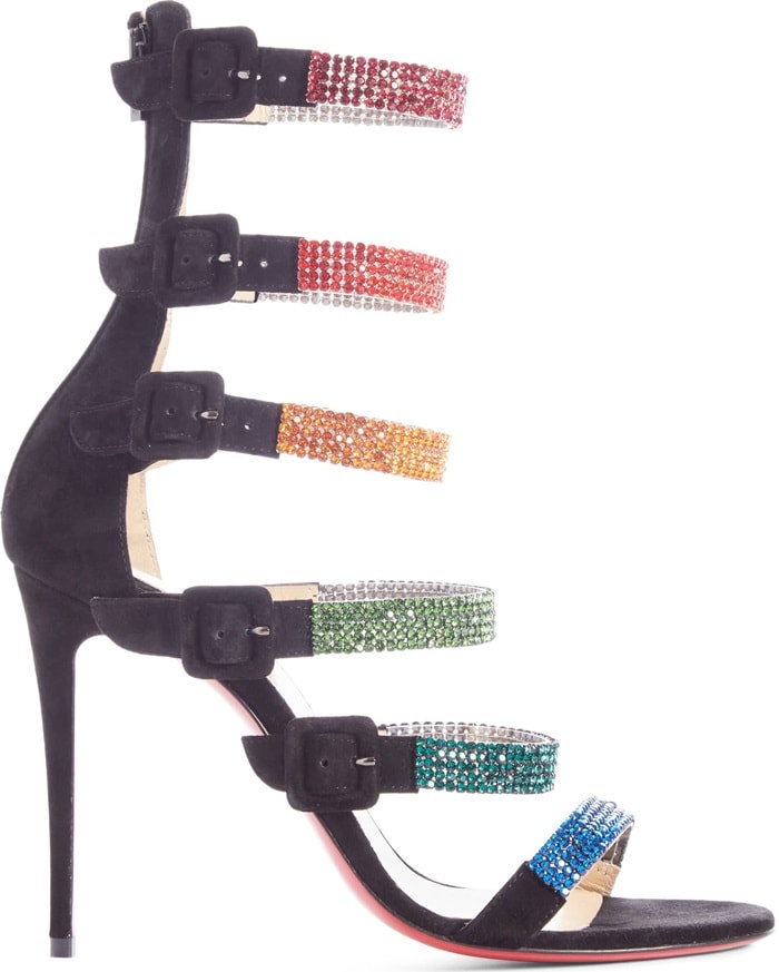 Finally, the couple can focus on parenting their two children and moving forward with their lives. Sparkling crystal ladder straps in a lovely rainbow of hues define a statement cage sandal from Christian Louboutin.