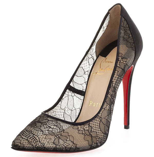 Kerry wore the “Pigalace” pumps, which are made of mesh lace with satin trim.