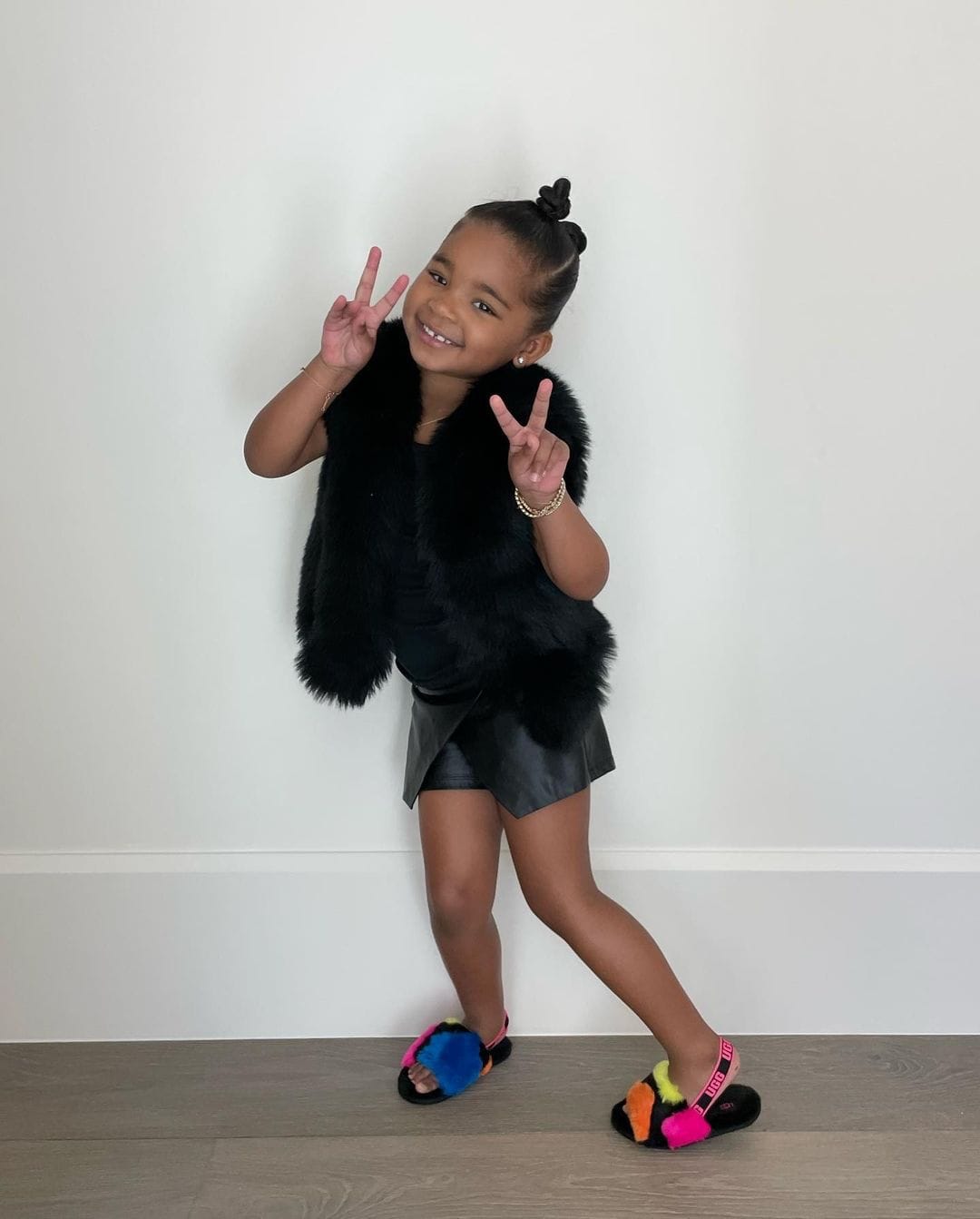 True Thompson striking an adorable pose as she prepares to be a big sister for the new baby in the family (Credit: Khloé Kardashian’s Instagram)