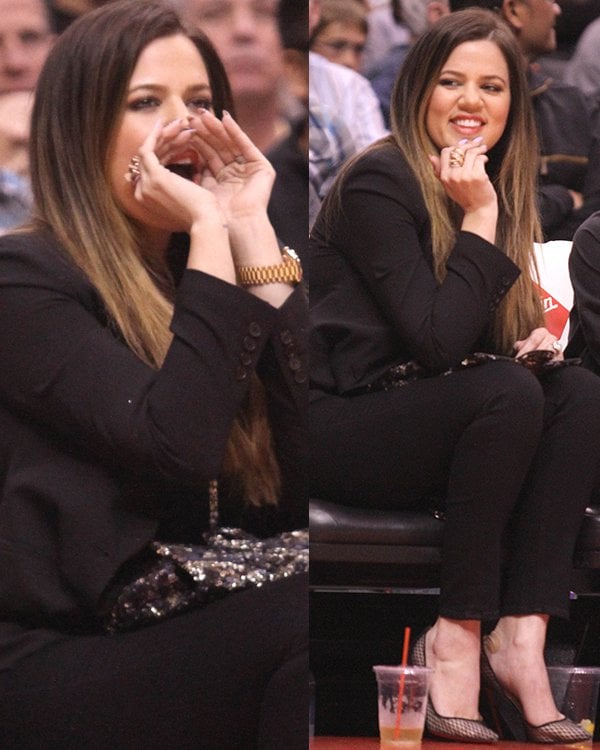 It’s not surprising to see Khloe watching a basketball game. Likewise, it’s also not surprising to see her in a black number and in a pair of Louboutins. We can perhaps conclude that the 28-year-old socialite is a fan of these three — basketball, black, and Christian Louboutin heels.