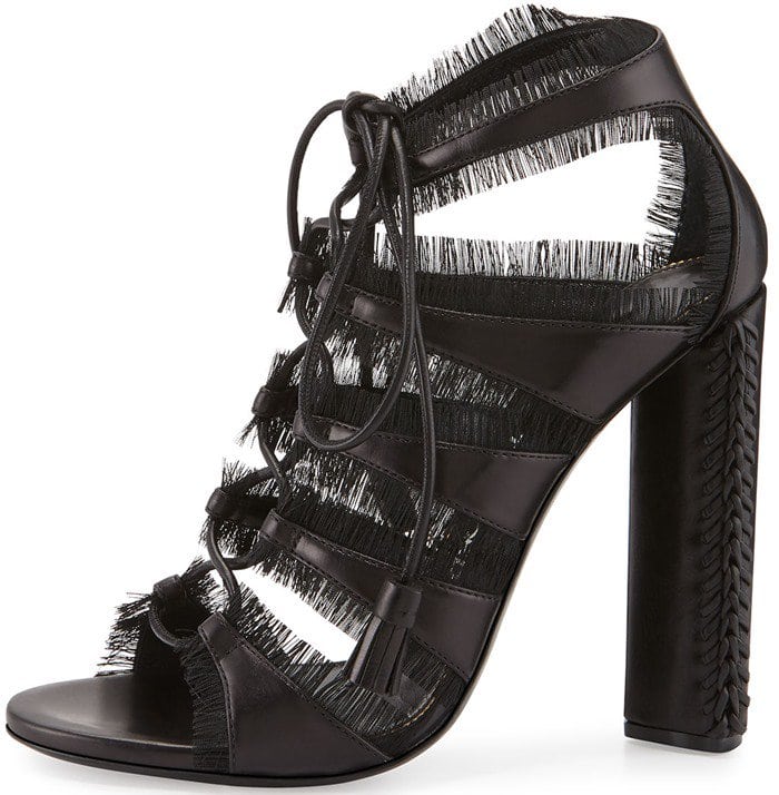 The 35-year-old reality star and ShoeDazzle founder sported a monochrome ensemble consisting of a knee-length black bodysuit and a long coat. She accessorized with ‘Adele’ sunglasses from Céline and completed the ensemble with a stunning pair of calfskin sandals from Tom Ford with eyelash-fringe trim.