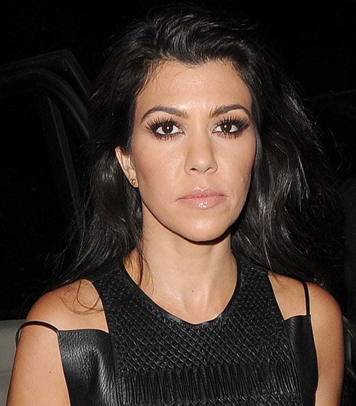 Mom-of-three Kourtney looked hot in an edgy black leather mini dress.
