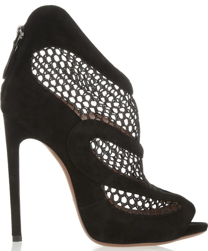 You can score a pair in your size online if you like what you see. A budget-friendly alternative would be the Steve Madden booties below. Much like the expensive designer originals, these shoes feature mesh panels.