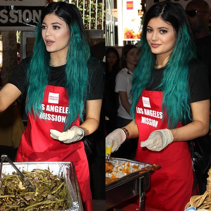 After stealing the spotlight at the 2014 American Music Awards, Kylie Jenner decided to give back to her community by volunteering in the Los Angeles Mission’s annual Thanksgiving Meal for the Homeless event.