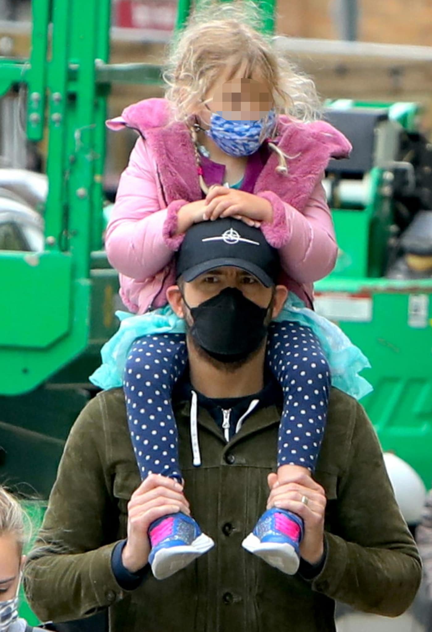 Looking every inch the doting father, Ryan Reynolds was pictured giving his daughter a ride on his shoulders.