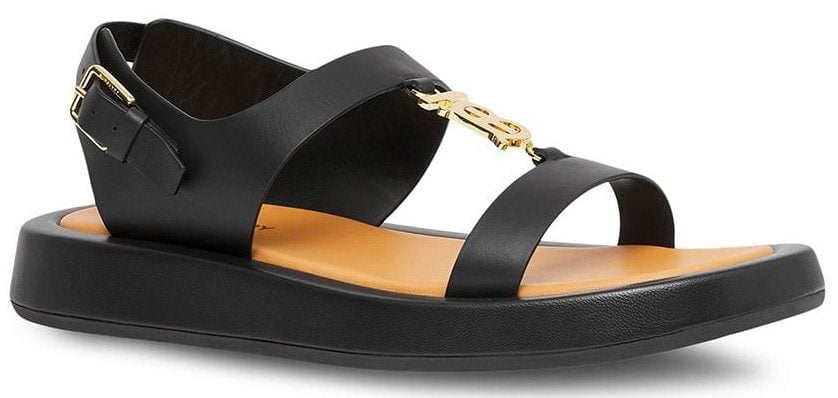 Featuring the “ugly” sandal look, these shoes come in smooth black leather, detailed with a gold-plated monogram motif. They also have ankle straps with engraved Burberry buckles set on chunky platform soles.