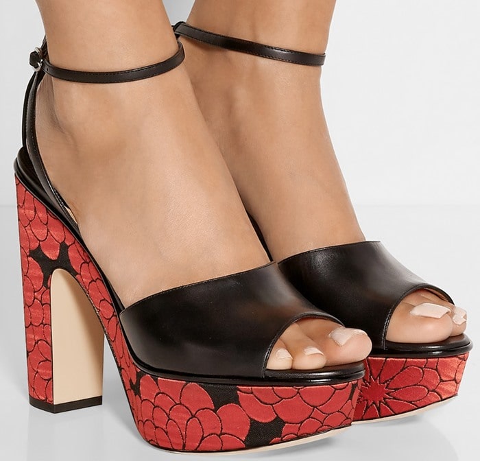 Her clunky shoes, a pair of burgundy “Horatio” platform sandals from Paul Andrew, did not improve the ensemble, though they boosted her height.