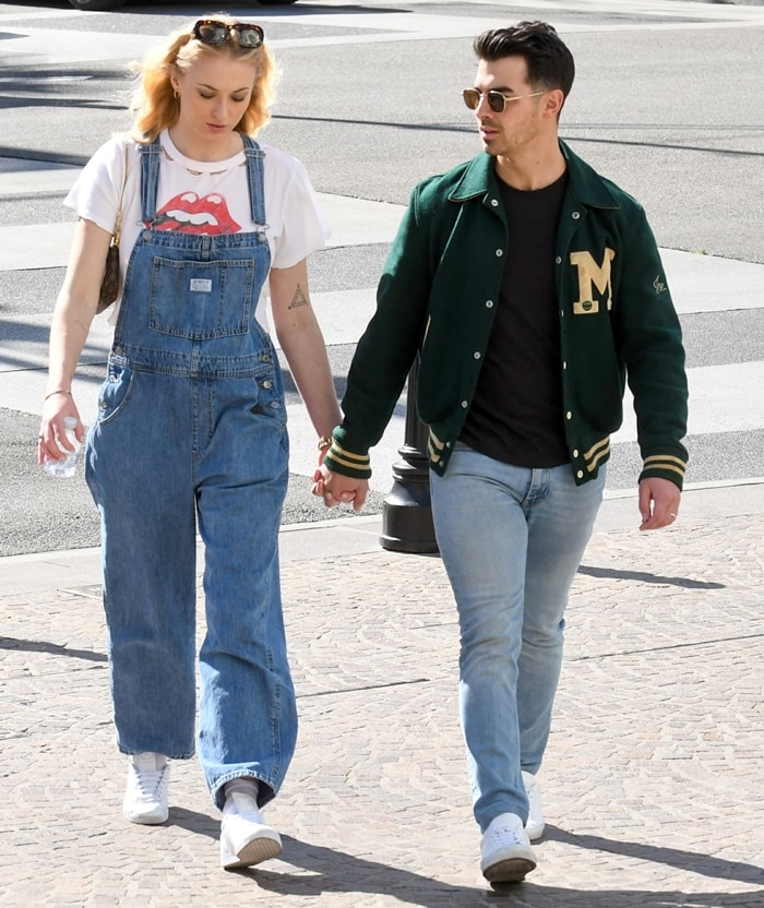 Best known for portraying Sansa Stark on the HBO fantasy television series Game of Thrones (2011–2019), she styled her Levi’s vintage overalls with a cropped Rolling Stones T-shirt and white Adidas Gazelle sneakers (available at Amazon).