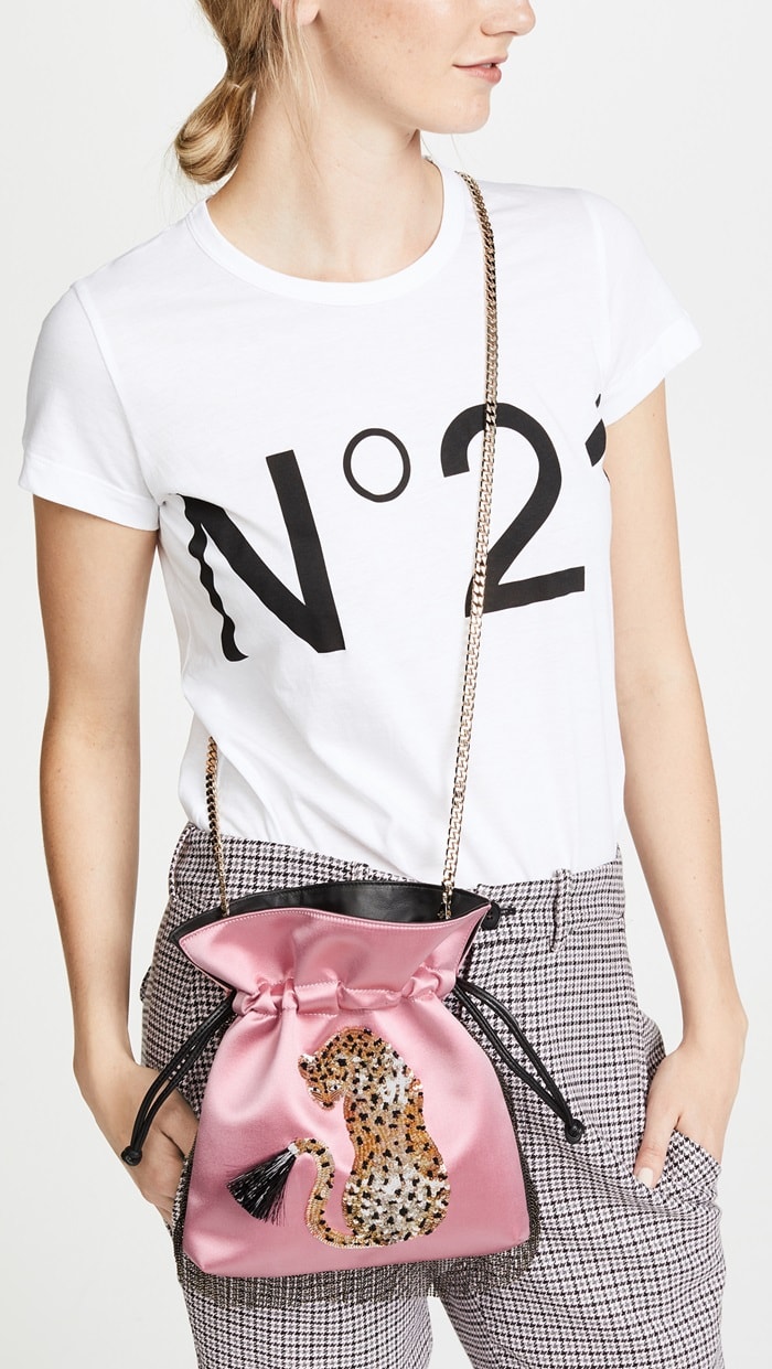 A signature les petits joueurs bag looks super luxe in rich satin. Carry this chic pouch everywhere from daytime errands to evenings out.