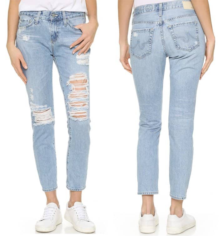She personalized the look by pairing it with Re/Done straight skinny jeans, revealing her slim calves and knees.