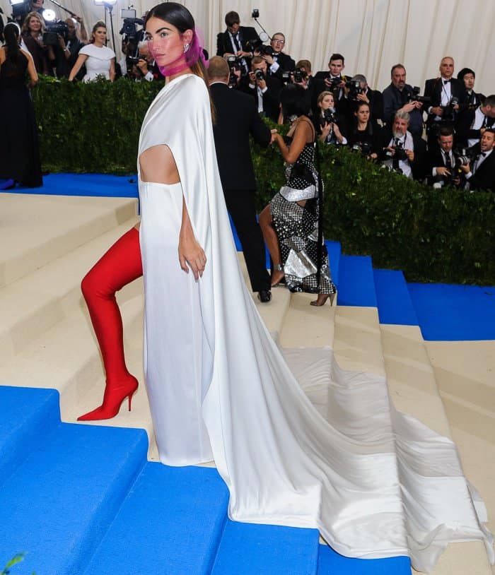Salma Hayek and Lily Aldridge made their own statements in striking thigh-high boots at the event. While most attendees opted for platform sandals and towering pumps, these two beauties walked up the steps in colorful Balenciaga “Knife” boots.