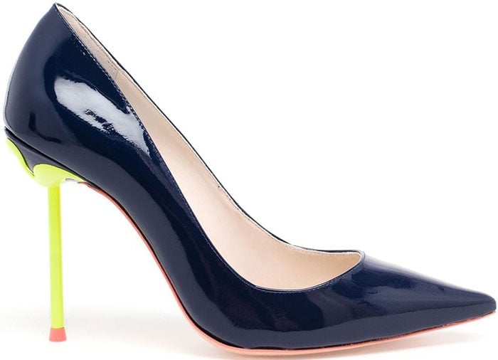You can get Cara’s fun navy-blue-with-a-neon-twist pumps over at Farfetch.