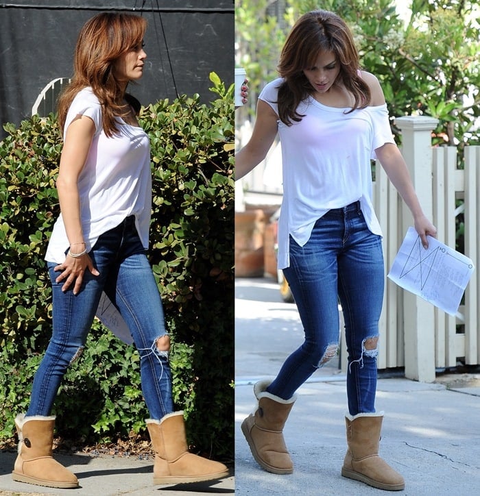 Earlier this year, we showed you how Jennifer Lopez styled a pair of ugg boots with jeans and a pullover. Four Christmases ago, Kim Kardashian sported similar sheepskin boots with a pair of cargo pants. Who do you think looked better in ugg boots?