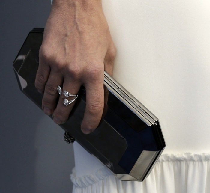 Norman Reedus looked dapper in ‘Samson’ leather boots from Christian Louboutin’s Spring/Summer 18 collection styled with a textured tuxedo from Ermenegildo Zegna Couture. Diane hid the same peep-toe ‘Glennalta’ platform shoes as Olivia Munn under an ivory silk crepe gown from the Vera Wang Collection Spring 2018 collection styled with Messika jewelry and a Tyler Ellis clutch.
