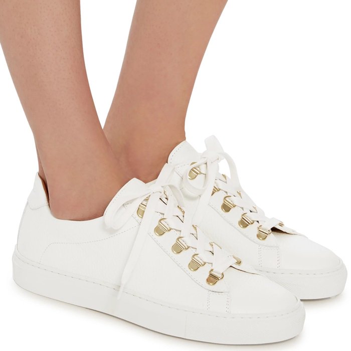 Lucy Hale looked relaxed in a Donni cover-up crop top ($49 at Shopbop) paired with high-waisted blue jeans and white ‘Gavia’ sneakers from luxury leather goods brand Koio ($248 at Farfetch).