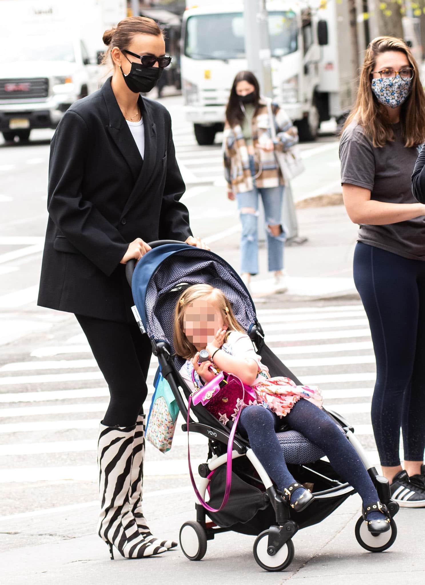 Proving she’s one of the most stylish moms in NYC, Irina Shayk wore a chic monochrome black-and-white outfit as she picked up her daughter, Lea de Seine, from school on Wednesday.