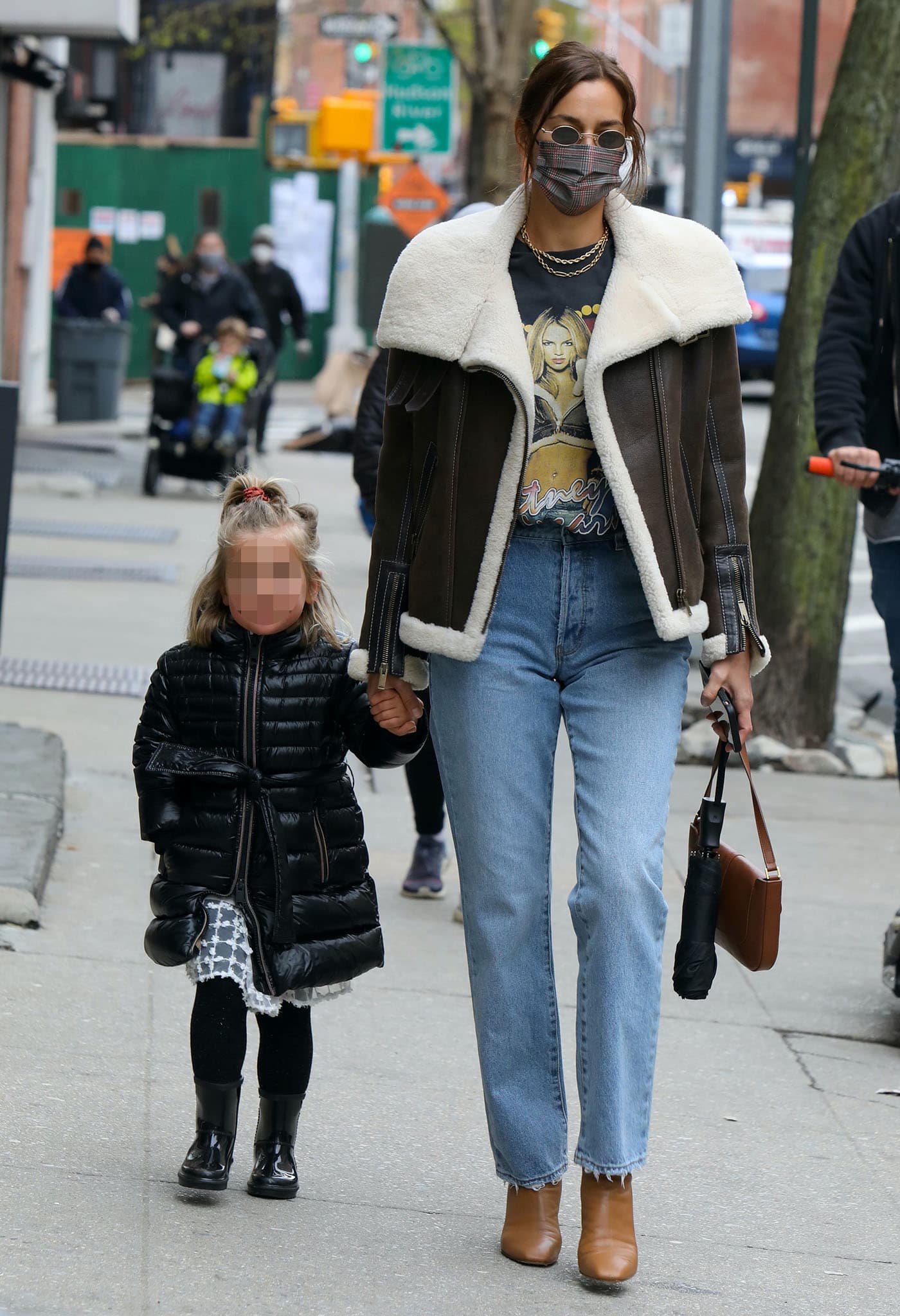Irina Shayk picks up her daughter, Lea de Seine, from school in New York City on April 14, 2021