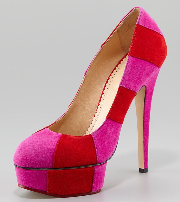 Like other “Priscilla” pumps, this pair features about 2 inches of island platforms and approximately 5 3/4 inches of heels. These Charlotte Olympia pumps are from the Spring 2012 collection. Not surprisingly, they have sold out in all colors online.