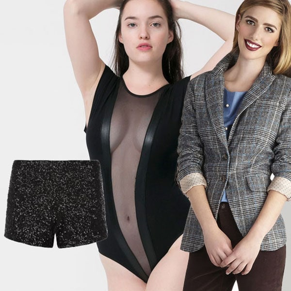 Shop her look: American Apparel Cotton Spandex Micro-Mesh Gloria-V Bodysuit, $44 / New Look Petite Black Sequin Hotpants, £17.99 / Patch in Action Blazer in Blue and Grey, $44.99
