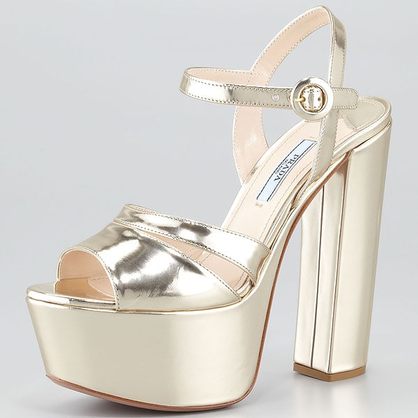 Prada Metallic Platform Sandals in Gold, $569 (before: $850) at Neiman Marcus