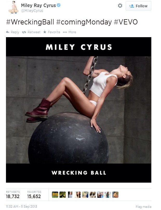 Of course, there’s skimpy clothing, overt sexuality, and a literal wrecking ball. The only thing missing is Miley pictured twerking against the thing.