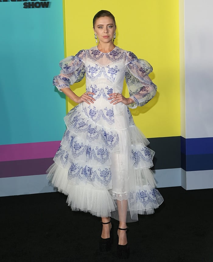 English actress Bel Powley will be playing production assistant Claire Conway in the upcoming web series. And at the screening event, she made sure to capture attention as she arrived in a frilly tulle gown from Simone Rocha’s Spring 2020 collection.