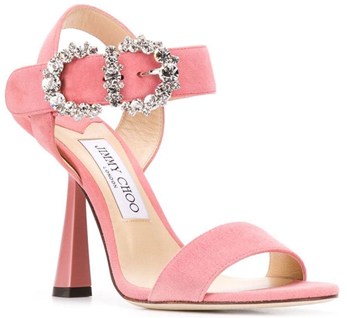 She selected the Schutz ‘Jolita’ sandals, which feature crystal embellishments on the front straps, halter ankle straps, and about 3.5-inch heels.