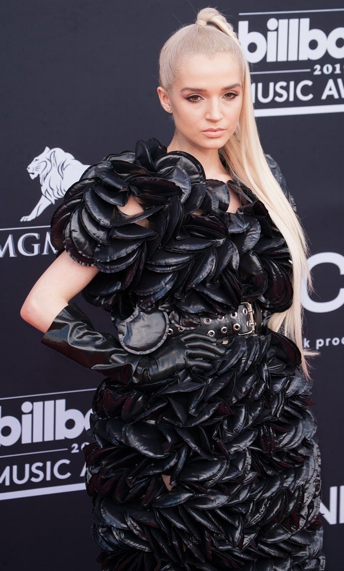 Poppy hit the red carpet in a Moncler 6 Noir Kei Ninomiya Spring 2019 dress that made it look like she was covered in mussel shells.