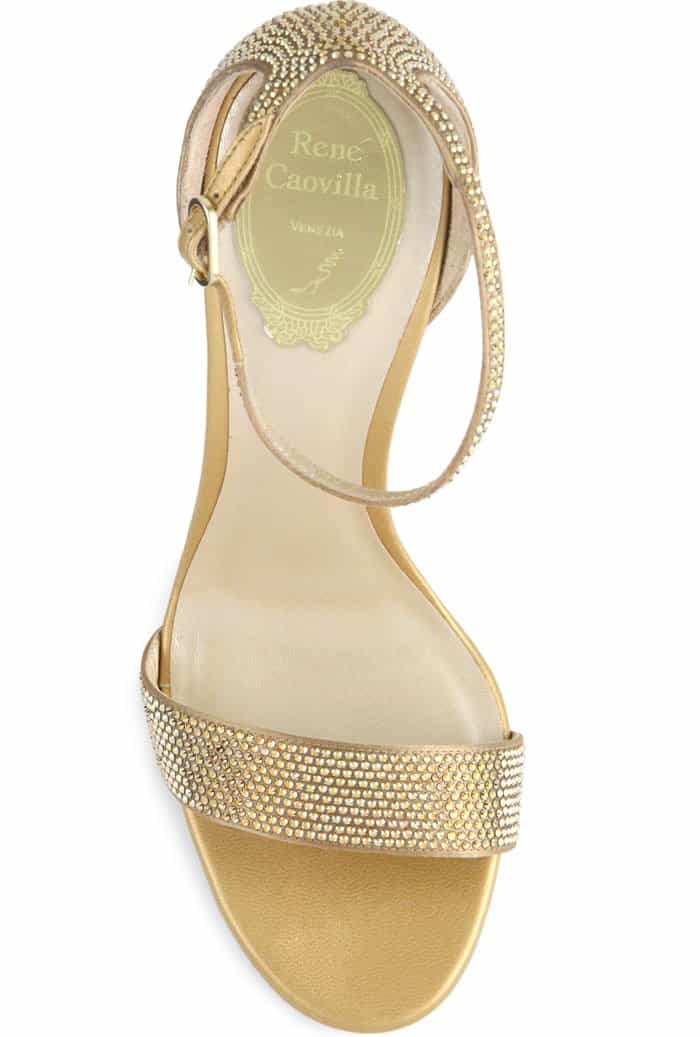 You can shop René Caovilla sandals in embellished gold leather at Farfetch.