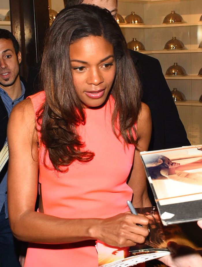 In April 2016, Naomie Harris looked pretty in pink at the opening party for the new Kate Spade New York flagship store on Regent Street held in London.